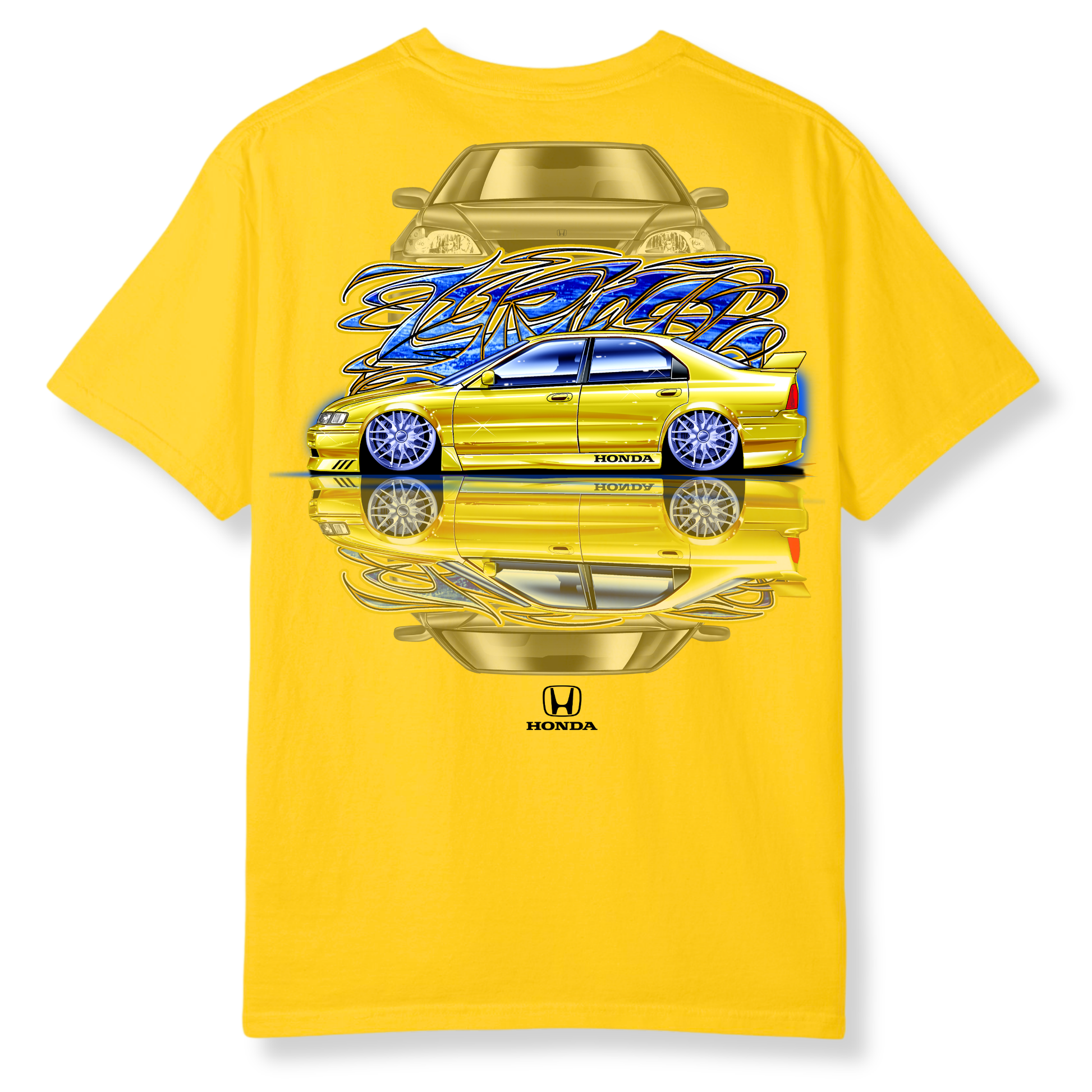 So, the graffiti in the background of this design says “Lyrics,” which describes the symphony coming out of the tailpipe of a high-revving Honda engine.
