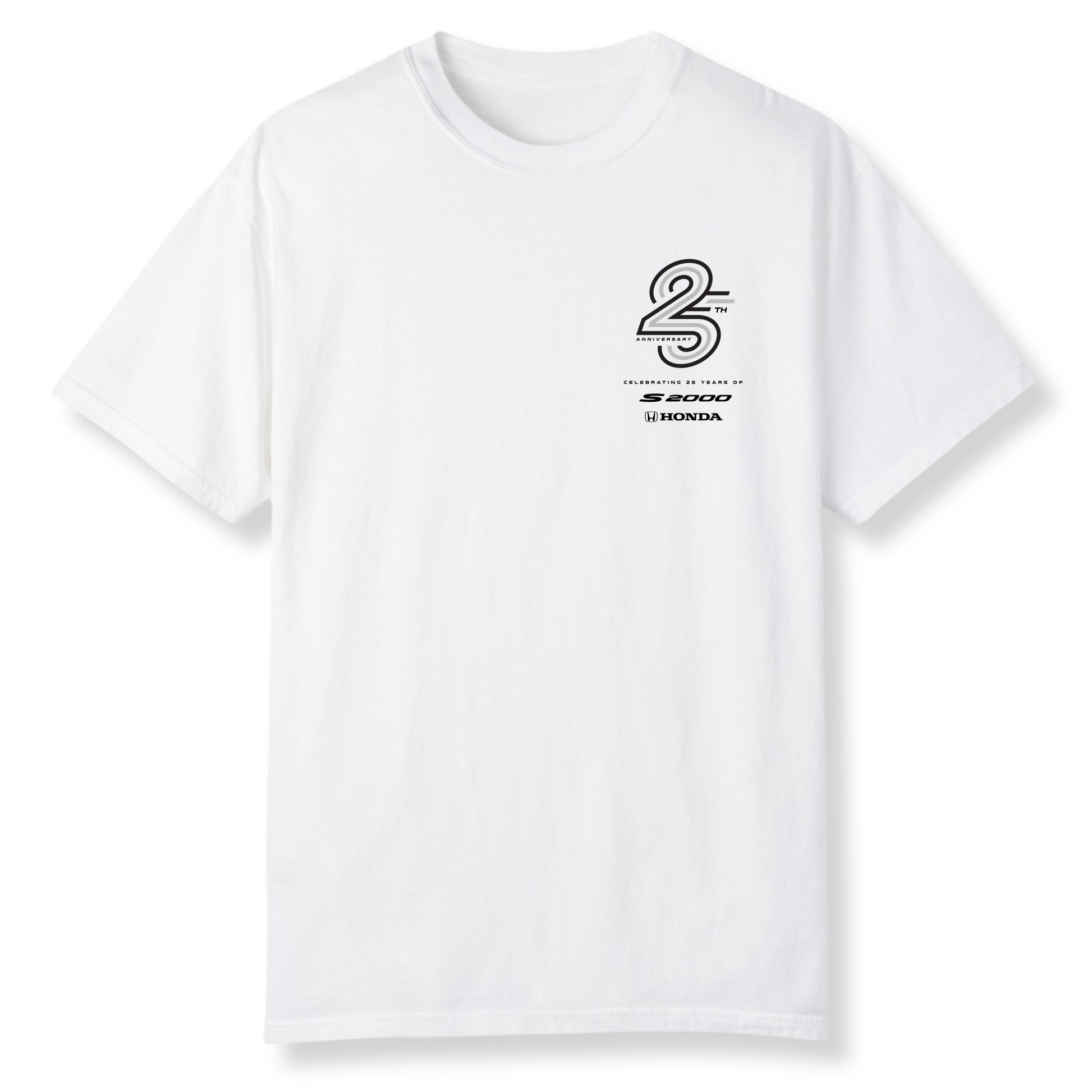 Created to commemorate 25 years of the iconic Honda S2000, this limited edition tee features original artwork illustrated by Dennis Caco, founder of SGR™ and Autocannon. The back print highlights a detailed side profile of the S2000 under a bold anniversary mark, while the front chest features a clean and minimal design with official Honda and SGR™ branding.